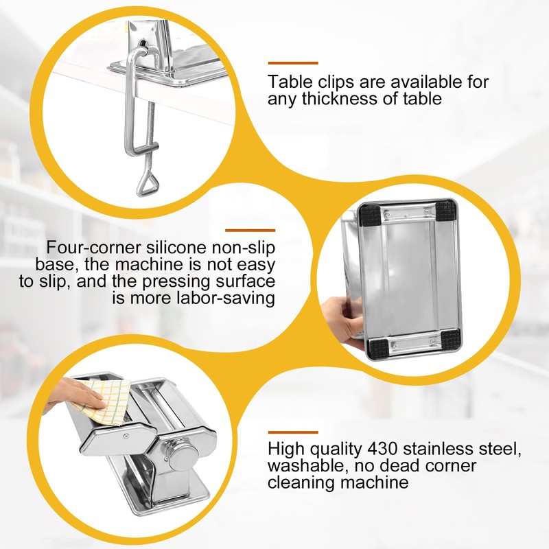 • Easy to Clean: The pasta machine is made of 430 dual stainless steel to ensure food processing safety issues. After use, the removable body enables you to clean every part of the pasta maker, easy to clean and more hygienic