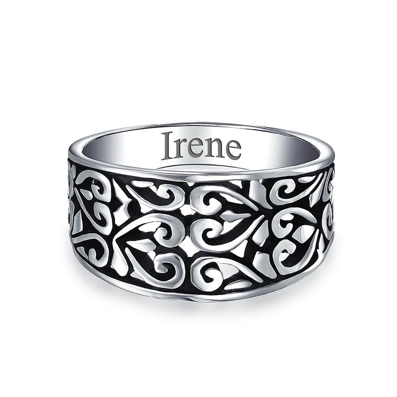- This stunning open filigree Heart Scroll ring is crafted from sterling silver and blacked by oxidization and is sure to be a showstopping details. Elegant and intricate silver ring crafted with precision and attention to detail. Width, this eye-catching swirling band is a versatile must-have for any jewelry collection.