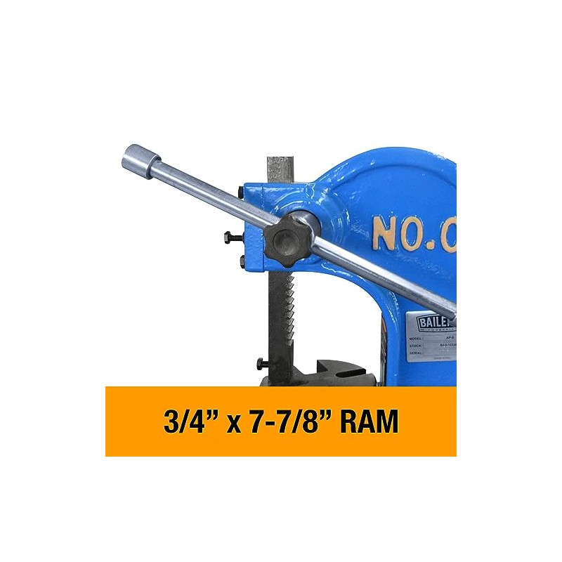 - Solid, case-hardened square 3/4" ram executes precise presses every time