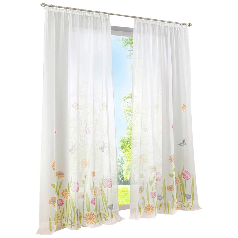 Bailey Jo Curtain Ruffle Tape Floral Curtains with Flowers Butterflies Transparent Voile Curtain