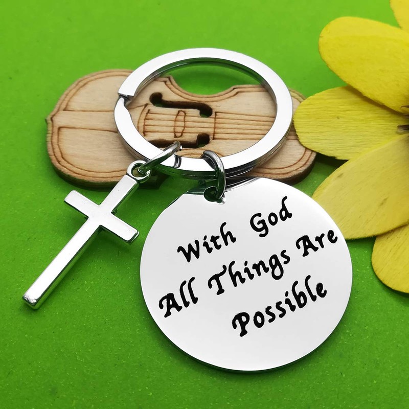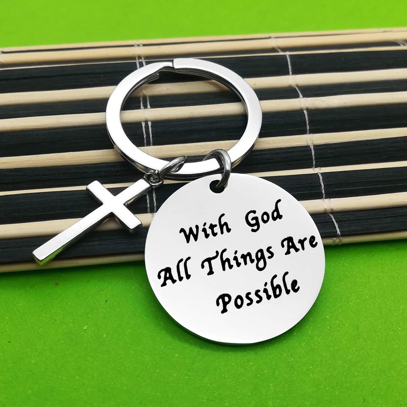 - Inspirational keychain gift - This keychain hand stamped with the words"With God All Things Are Possible”Great Keychain gifts for birthday, graduation, Christmas, Thanksgiving,Valentine's Day.