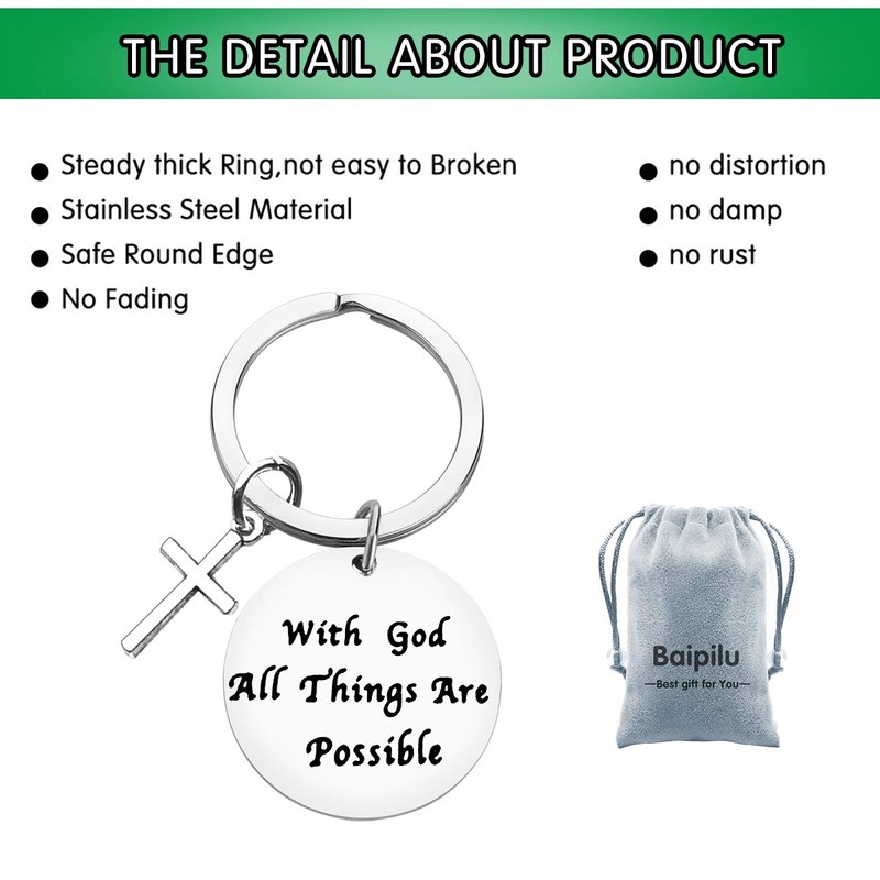 Baipilu Keychain Inspirational Gift Encouragement Keychains With God All Things Are Possible Religious Key Chain Faith Keychain Friend Couple Family Nursing Graduation Gift