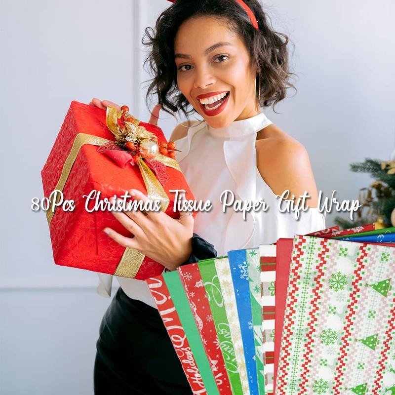 BAISDY 80 Sheets Christmas Tissue Paper for Gift Wrapping 50 x 50 cm
