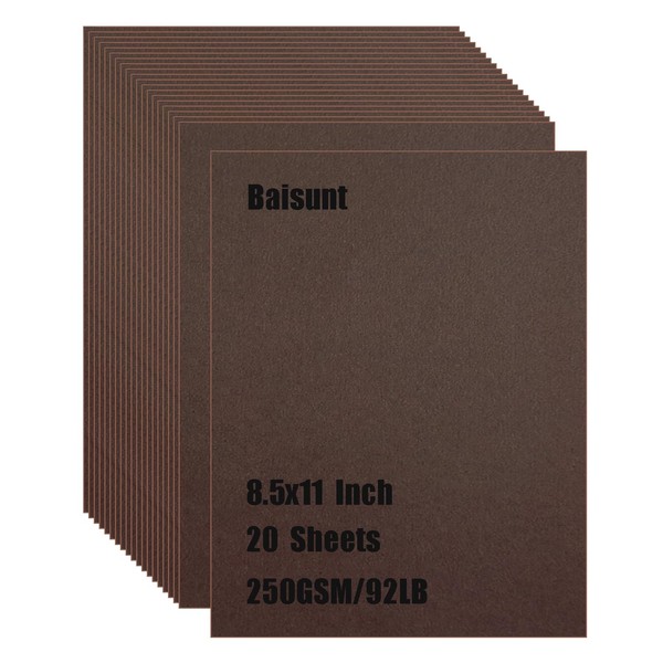Baisunt 20 Sheets Brown Cardstock Thick Blank Craft Paper for DIY Art Project, Scrapbook, Cards and Invitations Making(8.5 x 11 Inches)