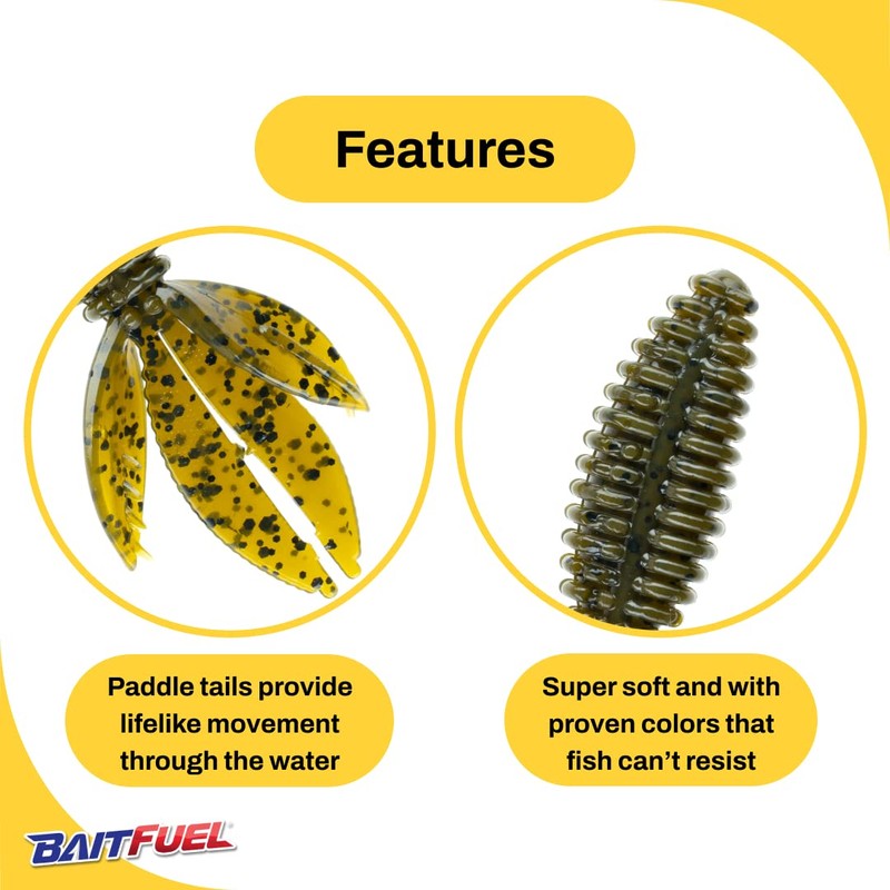 BAITFUEL B Bug Infused with Supercharged X55 Formula Gel: Fish Scent Technology with Powerful Attractants | 4.3-Inch, Green Pumpkin (PN: X48505)