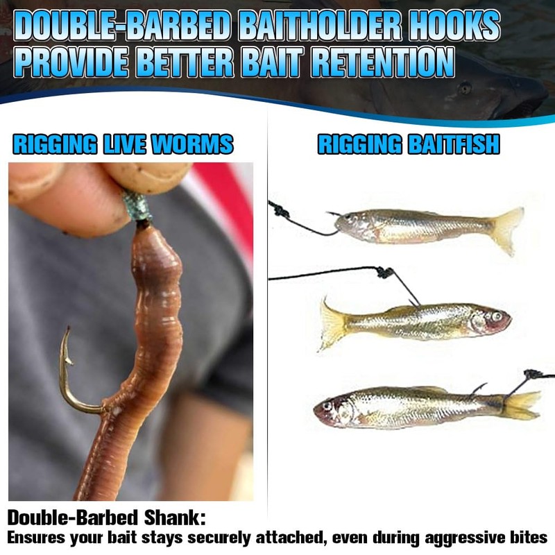 - Secure Bait Holding: Double-barbed shank keeps bait firmly in place, ensuring it stays on during aggressive strikes, a critical feature for anglers using live bait.