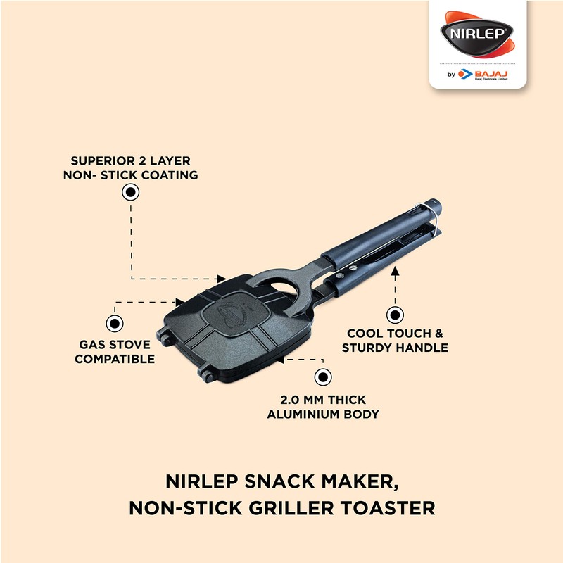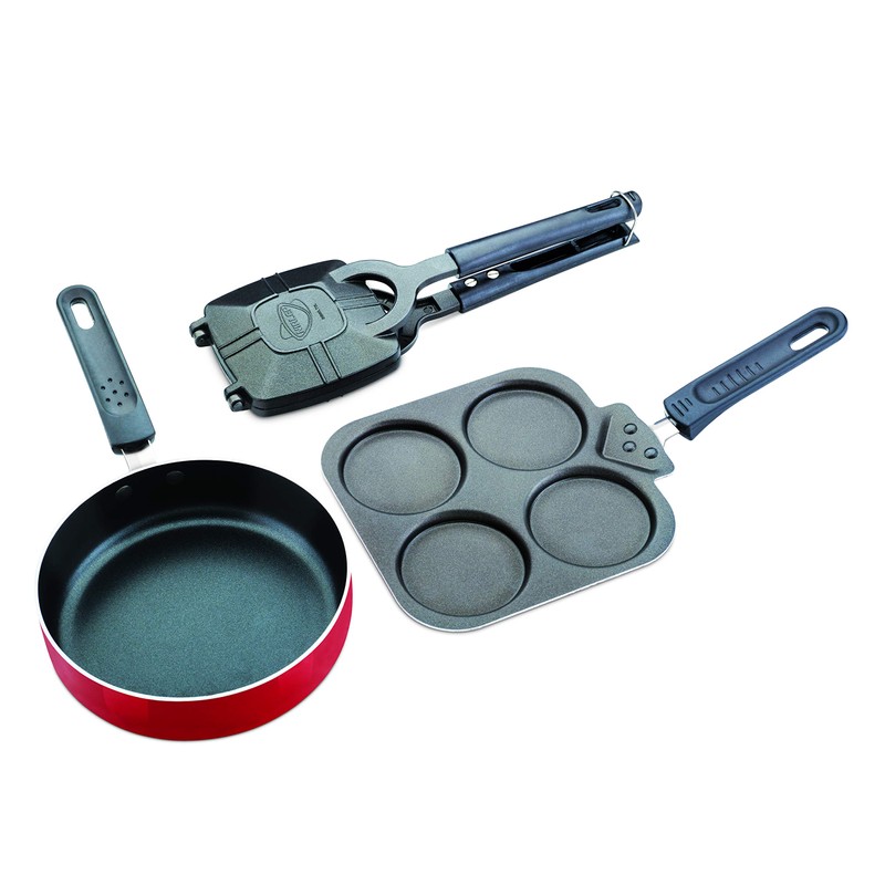Bajaj Non-Stick Breakfast Gift Set (Multi Snack Maker 2.2 mm, Sandwich Griller 2 mm & 2 Minute Fry Pan 16 cm Diameter) from Nirlep