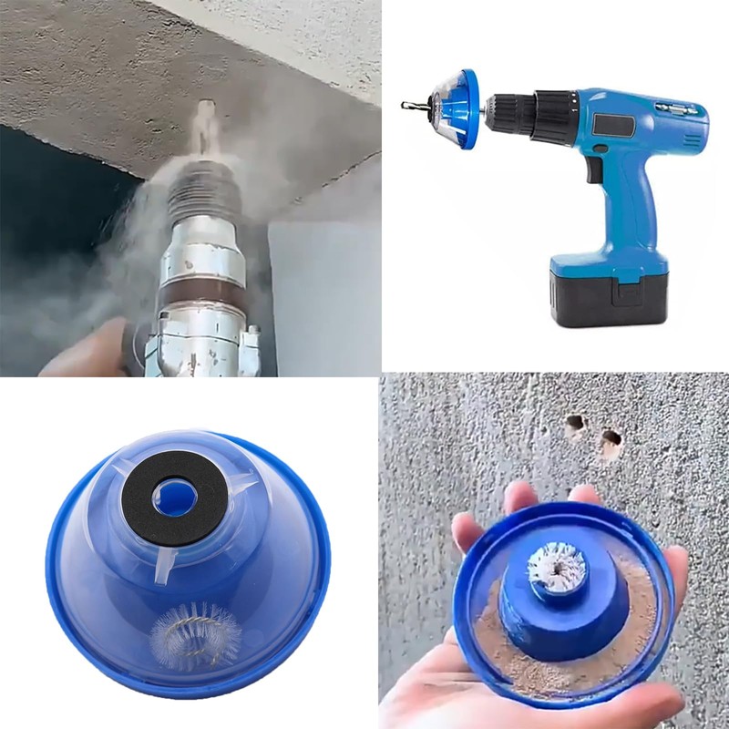 - Dust collection tool: To prevent dirt from covering your floor or furniture, try plastic dust protection. This handy device fits drill bits and catches the dust that is created when drilling holes in drywall, wood, metal, concrete and other materials