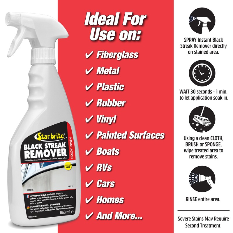 - Safe on fiberglass, metals and painted surfaces