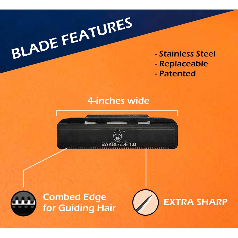 Bakblade 1.0 Back Shavers Men, Hair Removal Body Shaver (DIY) - Extra-Long Handle Trimmer, Wet Dry Shave