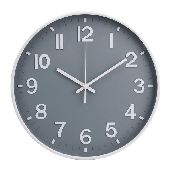 bakbrand Wall Clock 12 Inch Grey Modern Simple Quartz Decorative Clock Non-Ticking Silent Battery Operated Round Wall Clocks for Living Room Bedroom Kitchen Office Classroom