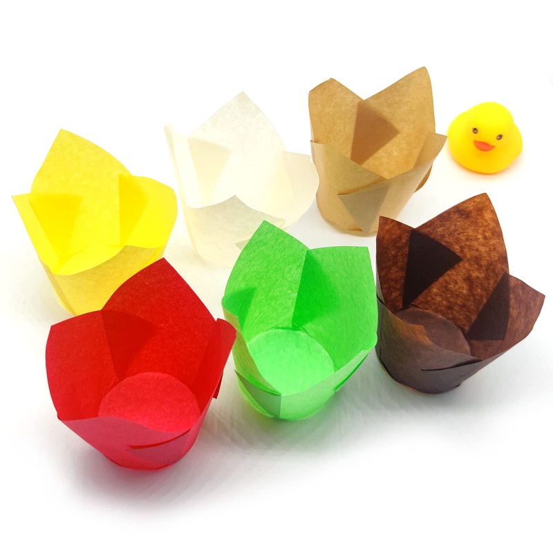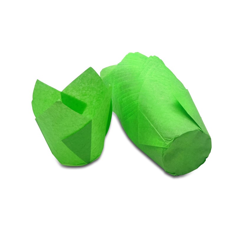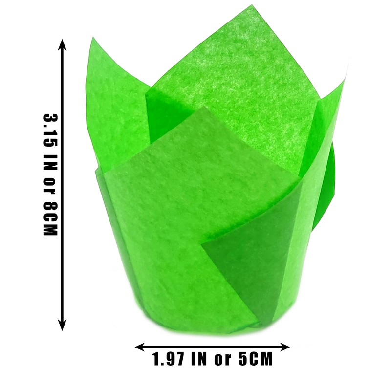 Total 50 pieces of Green premium greaseproof tulip style natural baking cups, these sturdy muffin cupcake liner wrappers are just enough for your celebration needs, not only decorating beautifully for your muffins, but also leaving your cleaning of muffin pans a piece of cake