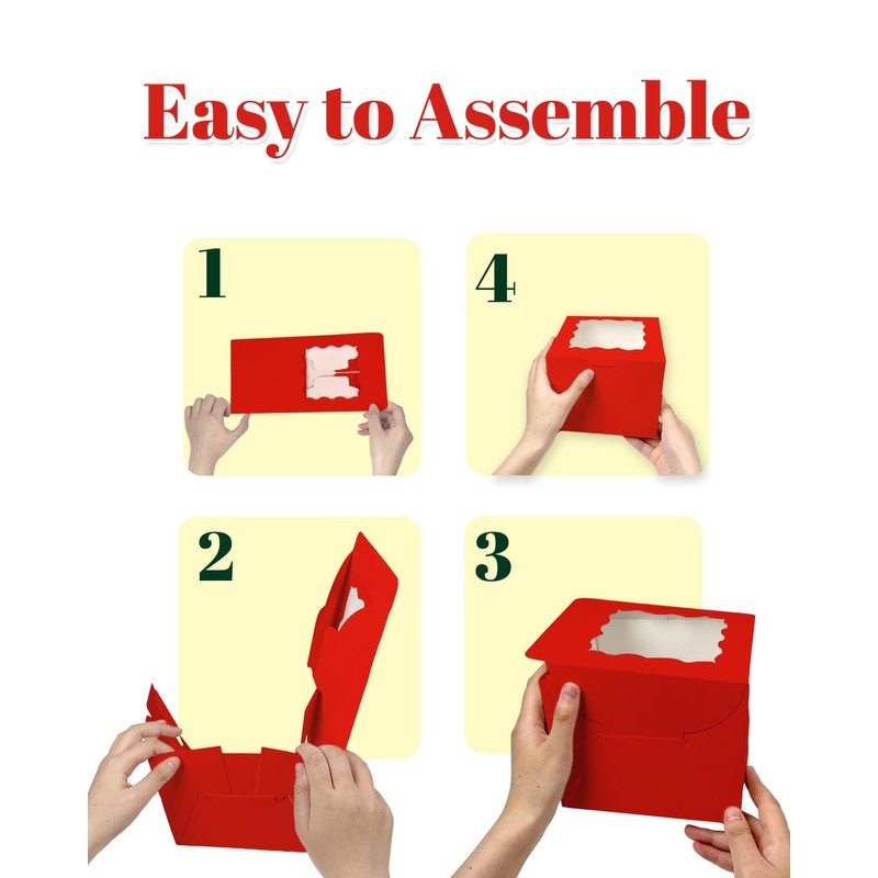 Bakepacker Bakepacker Red 8x8x5 Inches 36pcs Cake Boxes with Window 18-Packs Red Cake Boxes 8 Inch Bakery Boxes (18 Cake Boxes +18 Cake Boards Included)
