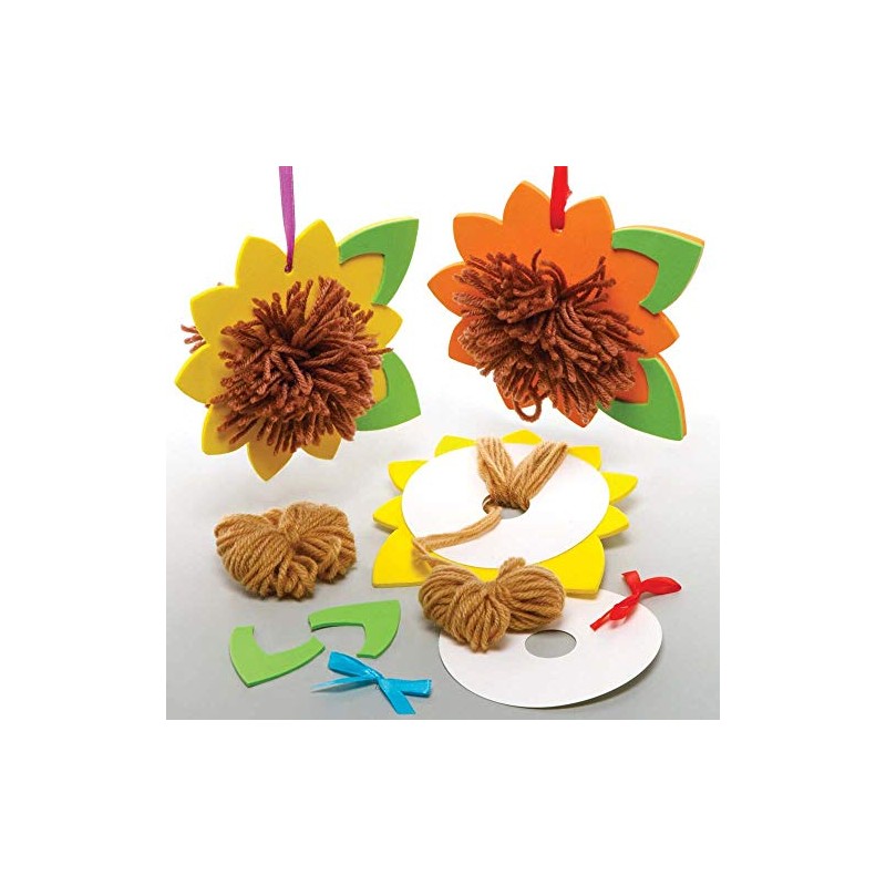 - PACKAGE INCLUDES 3 fluffy sunflower craft templates including different color accessories. Comes with different coloured yarn to complete the fun designs.