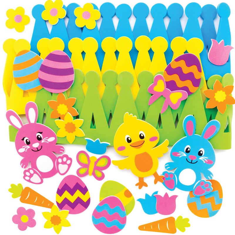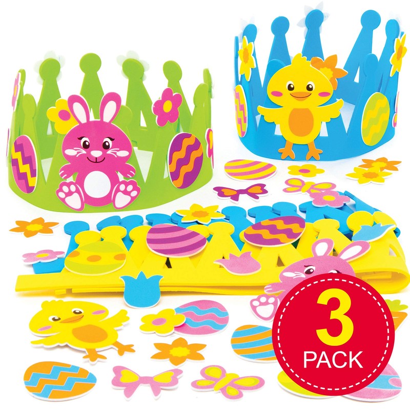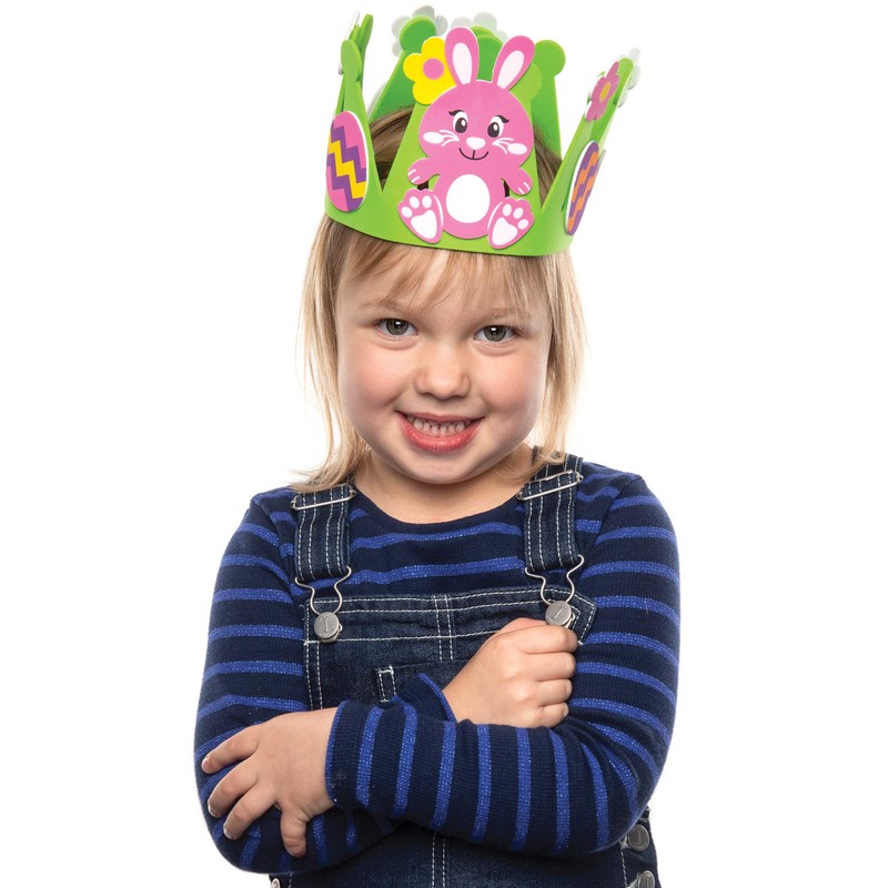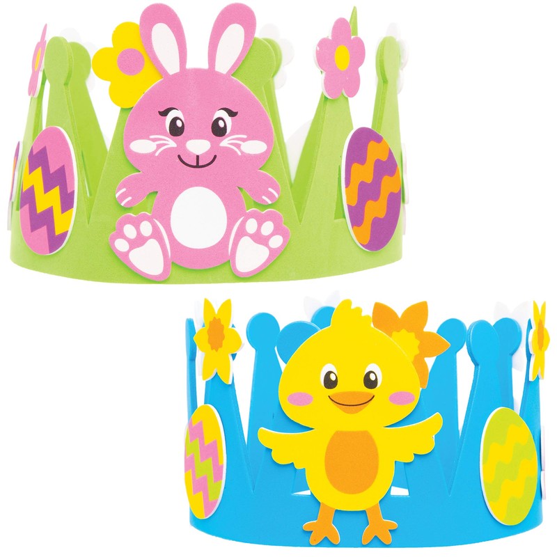 - Easter Crowns for Kids The foam crown base can be laid out flat and then decorated with the pre-cut self-adhesive Easter motifs such as eggs, chicks and bunnies. They are very comfortable to wear, and the kits contain everything required to complete the project! They are easy to attach and can be adjusted to size.