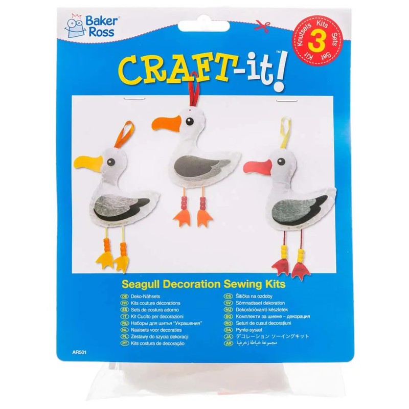 Baker Ross AR501 Bird Seagull Kits, Introductory Sewing for Beginners and for Kids Arts and Crafts Projects (Pack of 3), Assorted