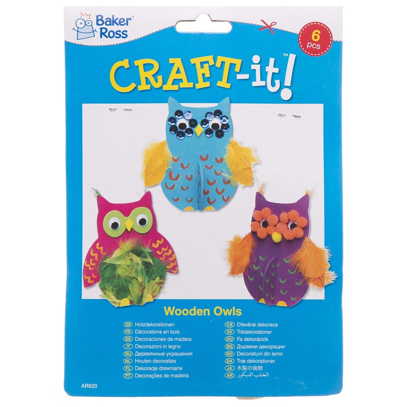 Baker Ross AR620 Wooden Owl Craft-Pack of 6, Painting Kits for Kids to Decorate and Display for Art Activities, Wood
