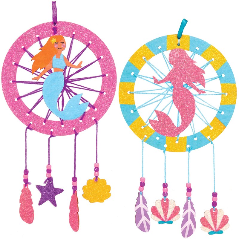 Baker Ross AT728 Wooden Mermaid Dream Catcher Set for Arts and Crafts Projects (4 Pieces)