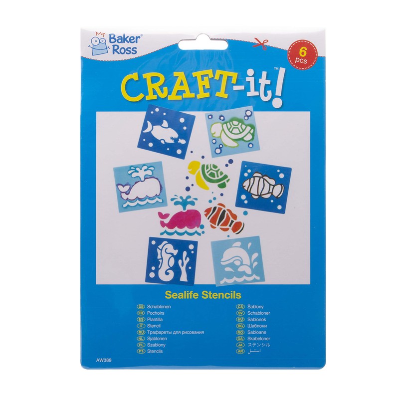 Baker Ross AW389 Sealife Stencils (Pack of 6), Assorted, Asst Colours