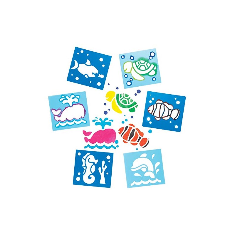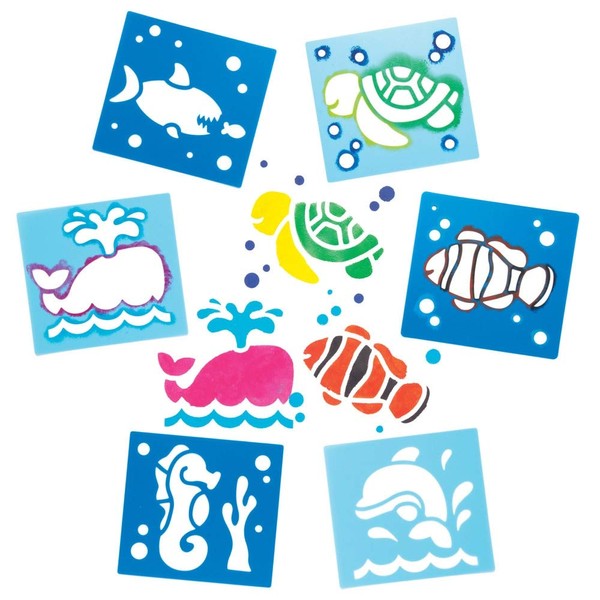 - Included in the Pack: This pack of stencils features 6 assorted designs (Fish, Sea Turtle, Dolphin, Seahorse, Whale & Shark). Stencil size 15 x 14 cm (5.9 x 5.5 inch). These stencils are the ideal to be decorated with ready mixed paint, crayons, pens and pencils.