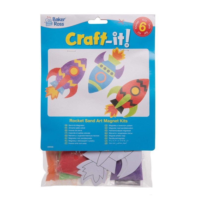 Baker Ross AW906 Rocket Sand Magnets, Arts and Crafts for Kids (Pack of 6), Assorted