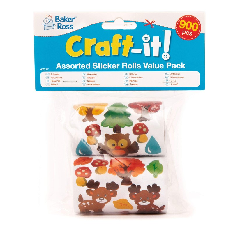 Baker Ross AX127 Sticker Rolls Bumper Value Pack, for Kids Arts and Crafts Projects (Pack of 900), Assorted