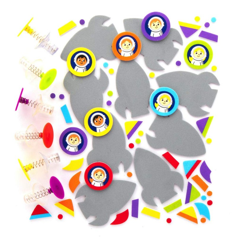Baker Ross AX181 Space Rocket Jumping Toys, 8 Pieces Small Bang Toys with Funny Spaceman Characters for Crafts, Foam Stickers, Art Toys