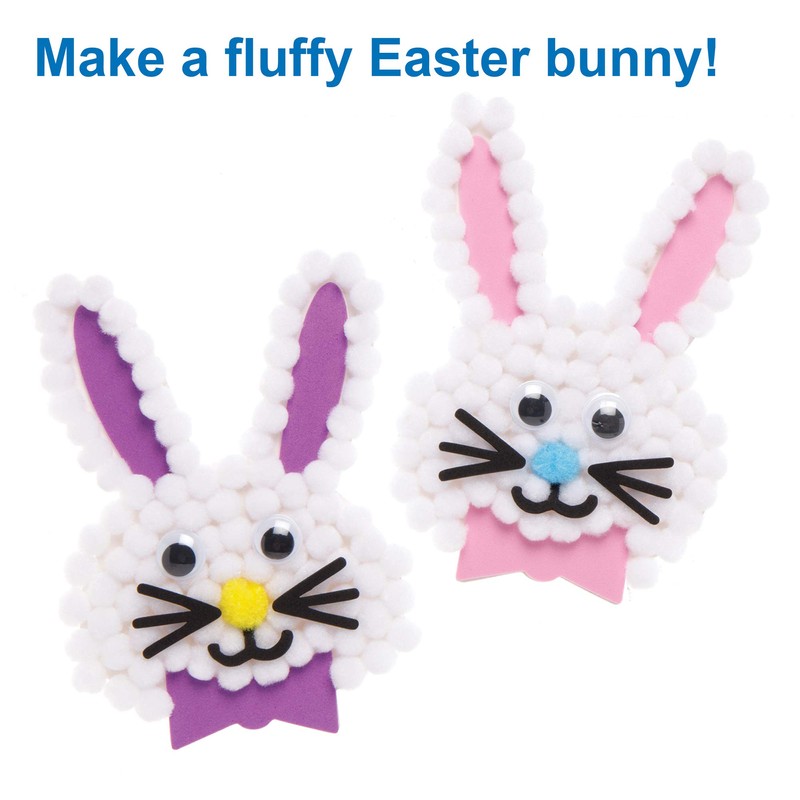 - EASTER CRAFT Decorate the pre-cut stencil, simply peel off the paper to reveal the adhesive surface, add the pom poms, foam pieces and wiggly eyes, attach with the tool provided, and watch your fluffy bunny come to life.