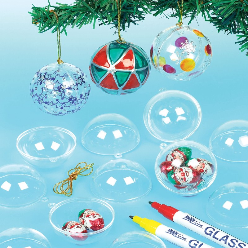 - EASY CUSTOM CHRISTMAS DECORATION Kids and adults will love painting and decorating these clear plastic balls to create colorful hanging baubles.