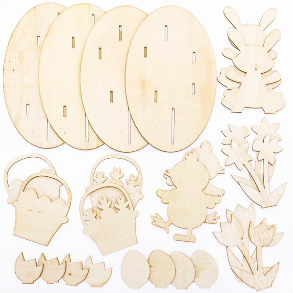 Baker Ross FC615 Easter Scene Wooden Craft Set, Assorted