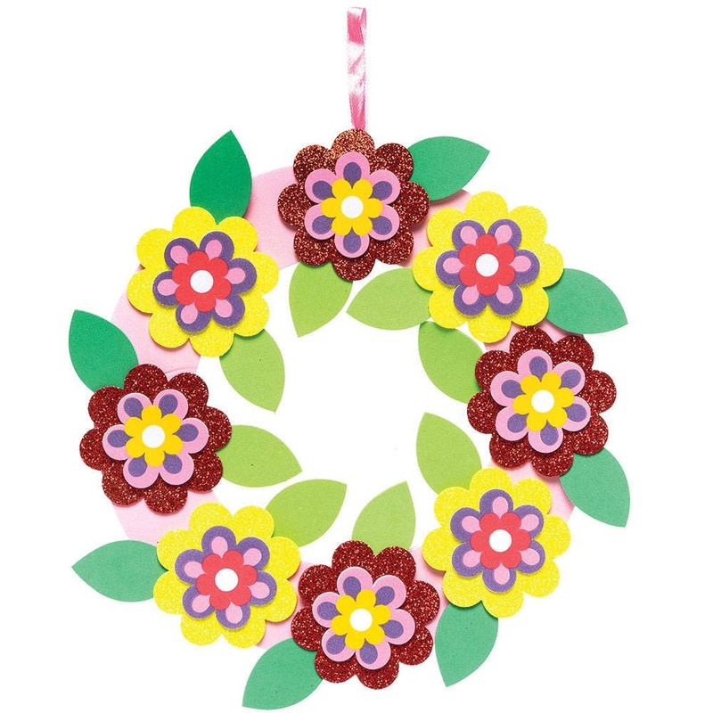 - In the pack: 3 x foam rubber flower wreaths in 3 different designs. Each set contains a foam stencil, self-adhesive foam decorations and a ribbon. 19.5cm diameter each