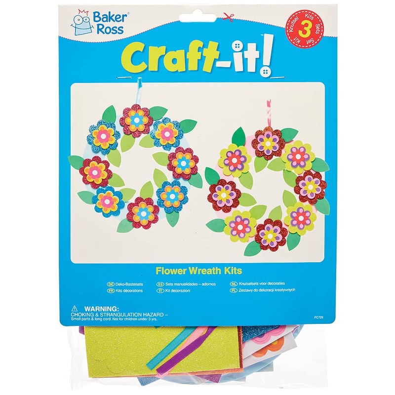 Baker Ross FC726 Flower Foam Rubber Wreath Craft Set - Pack of 3, Wreaths Crafts for Children
