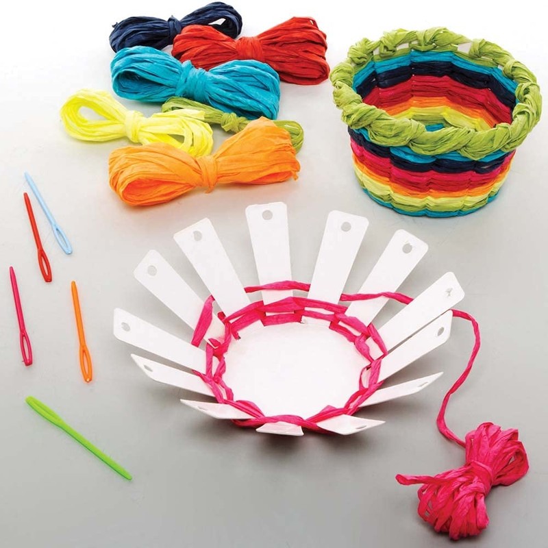 - Weaving Kit: This multipack contains everything kids need to make their own small woven basket. This simple kit is a great introduction to weaving and sewing crafts