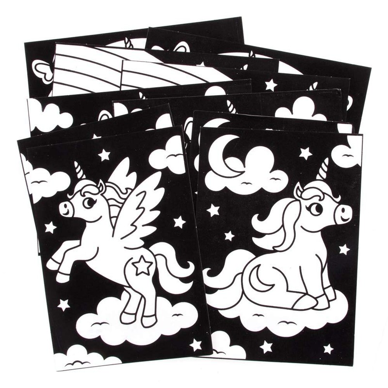 Baker Ross FE258 Unicorn Colour-in Pictures - Pack of 10, Make Your Own Picture Crafts, Craft Set for Children to Decorate, Creative Activities for Kids,Black