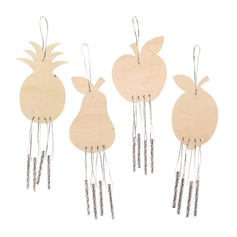 - Included in the Pack: Each wooden shape comes pre-strung with metal chimes. 4 assorted fruit designs to decorate and hang. Windchimes vary in sizes between 11 - 14 cm (4.3 - 5.5 inch).