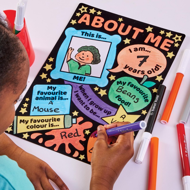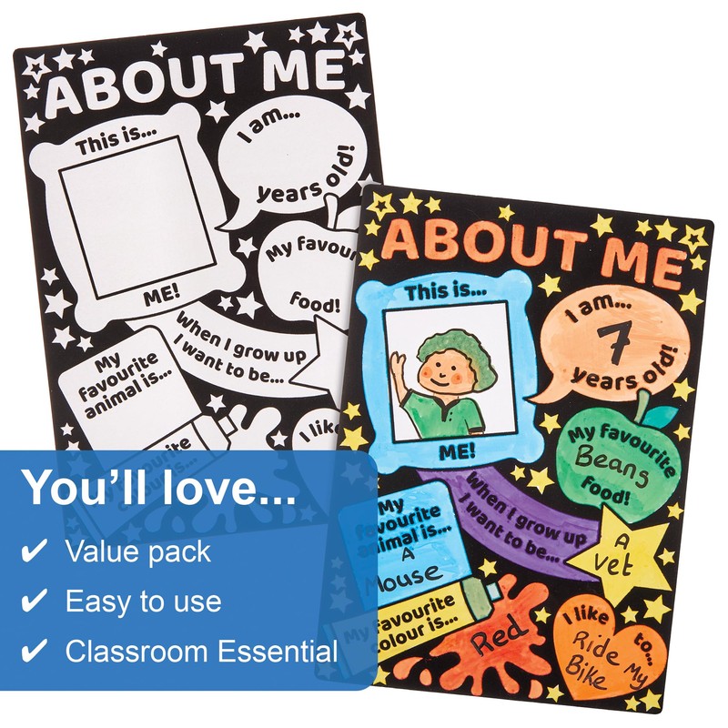 Baker Ross FN116 About Me Poster Class Pack - Pack of 10, School Supplies Teaching Resources and Learning Aids for Classrooms