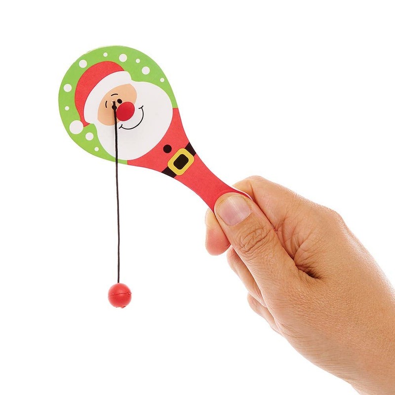 Baker Ross FX396 Christmas Chums Mini Biff Bats - Pack of 10, Xmas Ball on a String for Kids, Kids Toys for Party Bags, Paddle Ball Toy