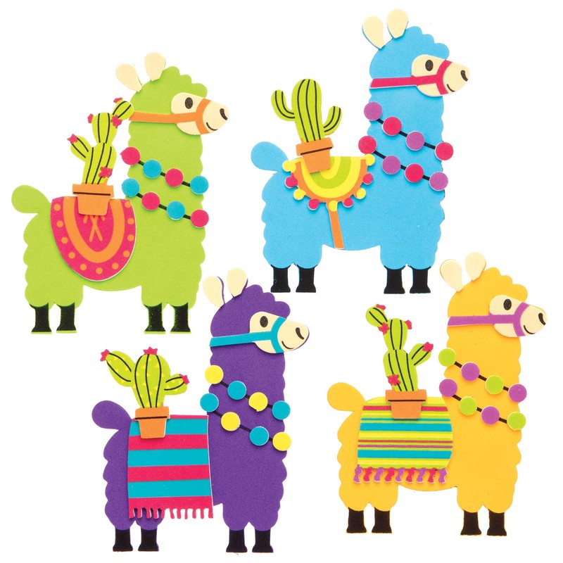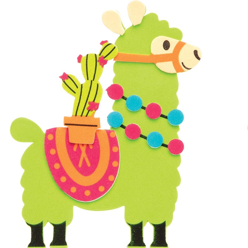 - Included in the Pack: Each kit includes foam llama template, self-adhesive foam decorations & magnets. 4 assorted llama colours - Purple, Blue, Green & Orange. 8 assorted designs. Size: 12.5cm x 9cm (4.9 x 3.5inch). Instructions included. No glue required.