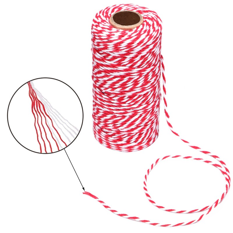 • 2 Pieces cotton twine:package includes 1 pieces red/ green/ white twine,1 piece red/ white twine,each piece length is 328 feet/100 m,totally 656 feet/200 m