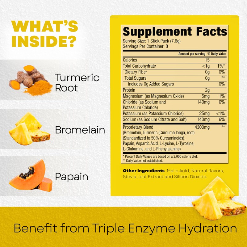 - Accelerated Muscle Boost: A powerful blend of bromelain & papain enzymes to ease post-workout soreness & refresh tired muscles. Ideal for active lifestyles, this electrolyte mix restores energy to keep you moving.