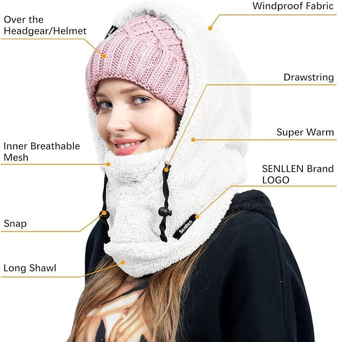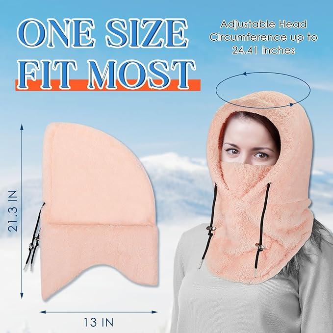 Balaclava Cold Weather Fleece Windproof Ski Mask Winter Breathable Thermal Face Mask Neck Warmer Scarf Helmet Hood Sherpa Hood Fleece Hood height 21.3 inch width 13 inch - Color: Pink