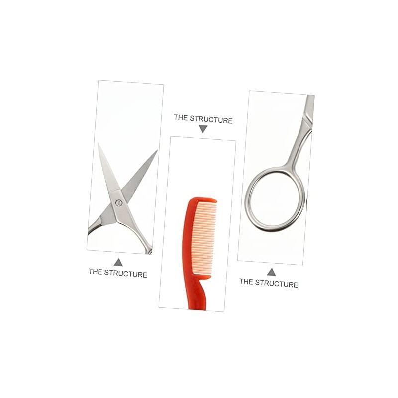 Stainless Steel Beard This stainless steel nose hair trimming scissor can evenly trim hair with ease.Beard Grooming Kit for barber shop and household DIY.beard comb kit Its distinctive and handle design allows the scissor be comfortably handled and delivering a confident haircut every time.Beard Trimmer Meet various demands, sweet and practical