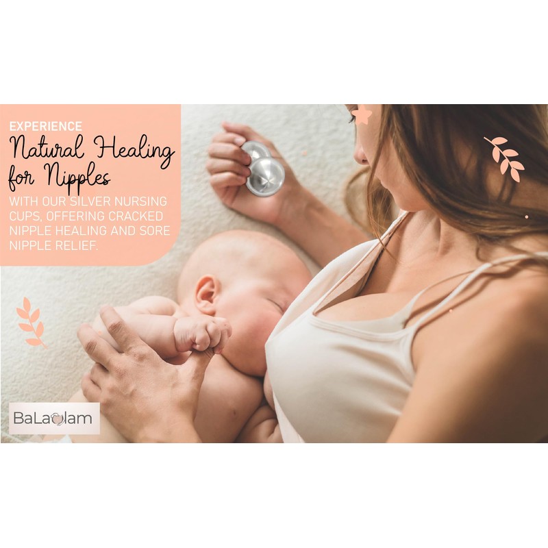 BalaOlam Original Pure Silver Nursing Cups for Cracked and Painful Nipples, Alleviate Soreness and Accelerate Healing Process. (Silver 999)