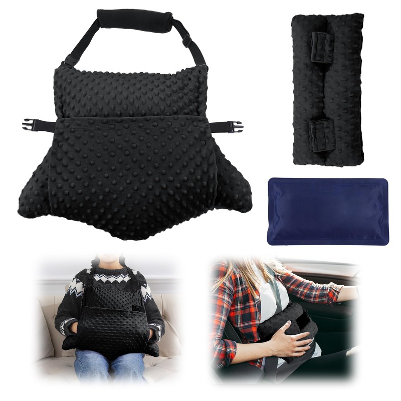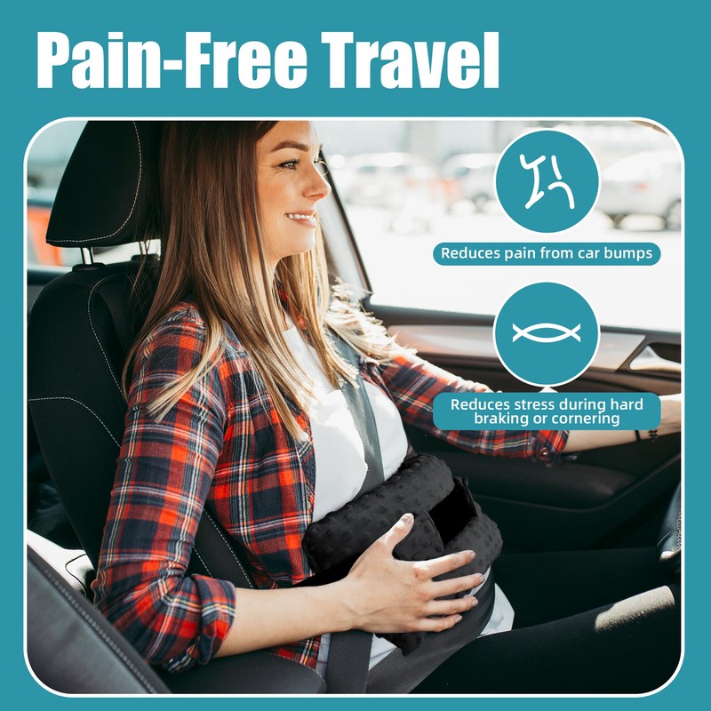 - 【Ice/Hot Bag Pocket Design】: The hysterectomy seatbelt pillow has a spacious pocket on the back of the pillow for hot and cold packs, using the ice packs close to the abdomen. Greatly reduces pain on bumpy roads, hard braking and cornering.