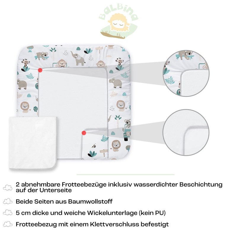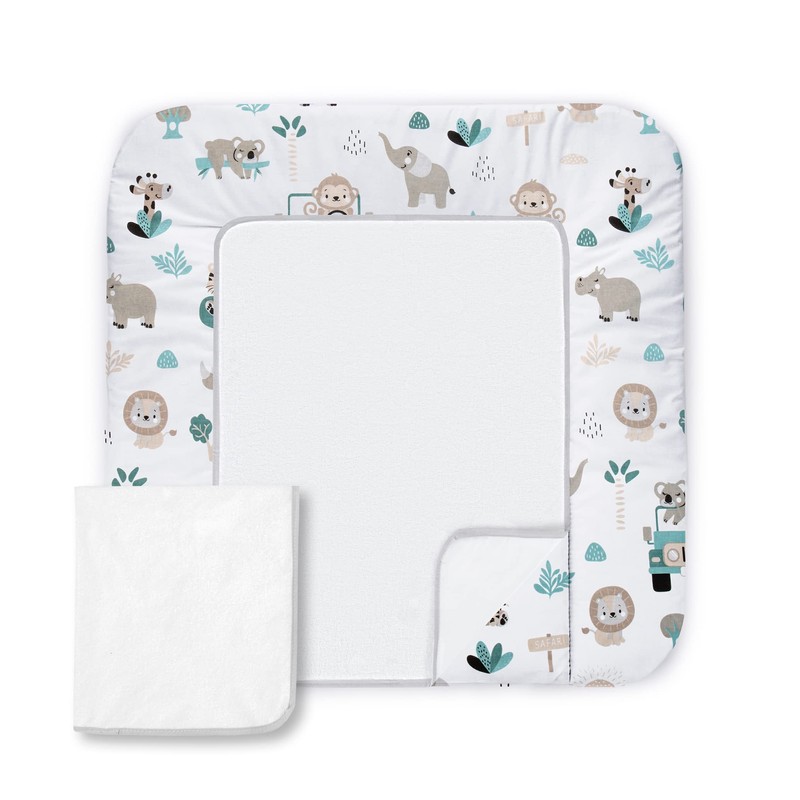• SOFT BADGE - The cotton pad is super soft and perfect for changing children. The changing table mat is made from certified cotton fabrics, which are available in interesting patterns with children's motifs. Two interchangeable terry towels for everyday use are also included