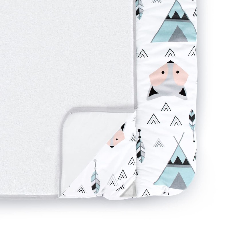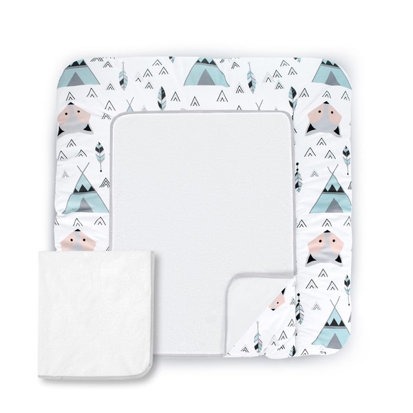 Balbina Wickelunterlage aus Baumwolle, Waschbare Unterlage zum Wickeln, Wickelauflage mit Austauschbarem Frotteebezug, Widerstandsfähig & Robust, 70 x 75 cm, Fuchs Tipi Mint