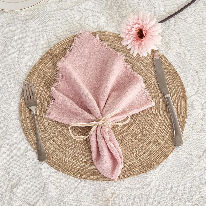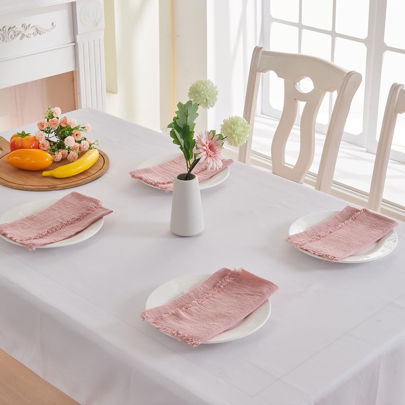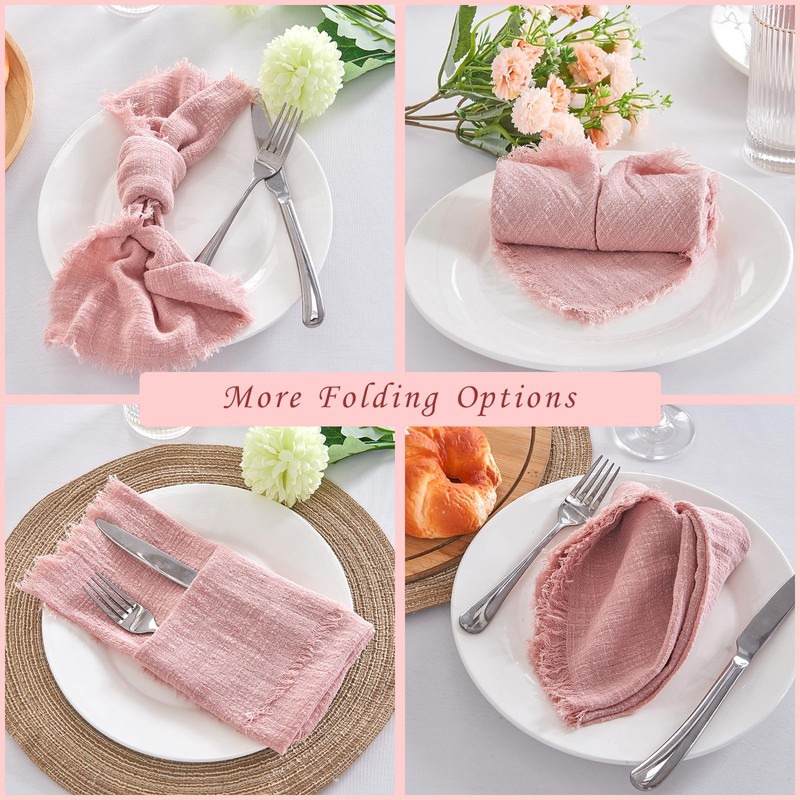 • 【Elegant Decor】Premium thick and soft cotton napkins with fringed edges, reusable. These gauze napkins are suitable for rustic, bohemian, farmhouse, or modern-style settings. Folding them into different shapes can create various unique dining experiences, leaving a lasting impression on your guests
