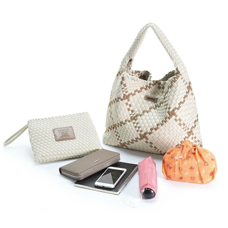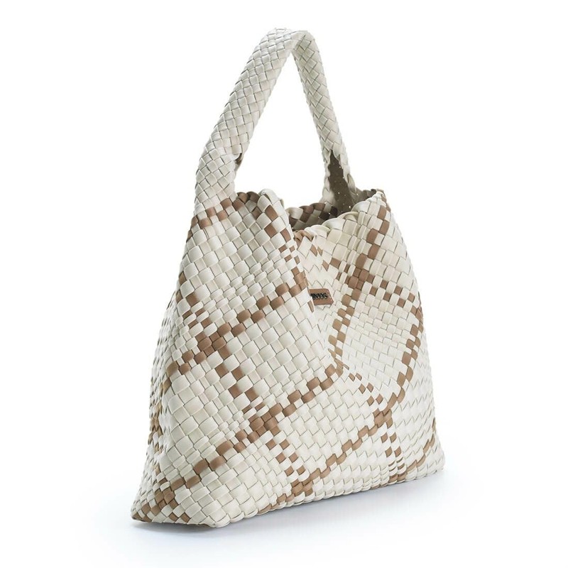 Balcos Women's Bi-Color Mesh Single Handle Tote Bag, beige