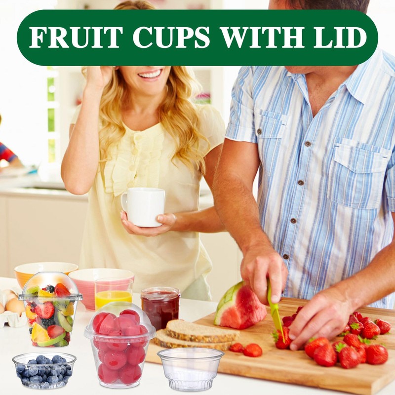 BALDCC 9 oz 50 Pack Clear Plastic Cups with Dome Lids, Dessert Cups with Lids, Disposable Clear Cup for Yogurt, Fruit, Ice Cream, Cupcake, Candy, Cold Drinks Etc