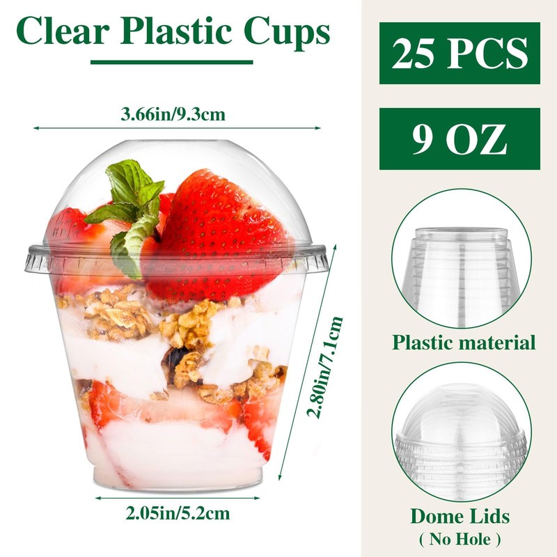 - Unique design:Our 9 oz clear dessert cups are made of transparent material, which is convenient for making all kinds of beautiful desserts. The Dome Lids can also meet your creativity in desserts without worrying about its deformation. It is very suitable for dessert, cake, yogurt, mousse, ice cream, sundae and other products you can think of.Please use your imagination!
